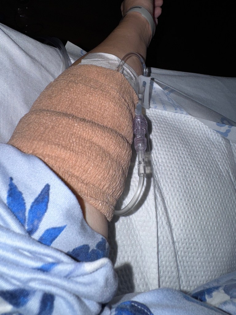 Dr. N had me go to the ER overnight and get admitted so that I could get my port and we could begin a slow rollout or what he called a “piecemeal” R-CHOP chemotherapy. Unfortunately the Monday after a holiday was not the day to be an add-on case for the interventional radiology department so I ended up not getting my port Monday, despite the clinical director of the floor trying to get me in with the manager of IR and my nurse practitioner calling the radiologist. So John and I spent the wee hours of Monday in the ER and got acclimated to the oncology floor during the day.