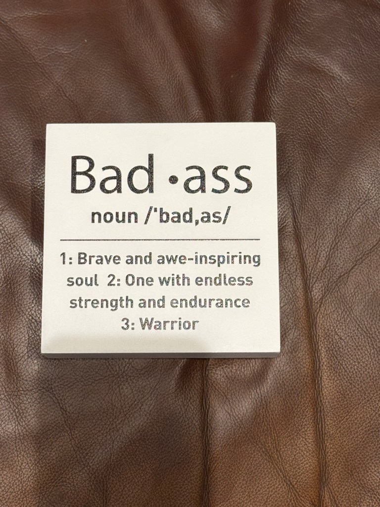 And my bestie sent me this great plaque defining the word badass, and let me just tell you, it’s perfection.