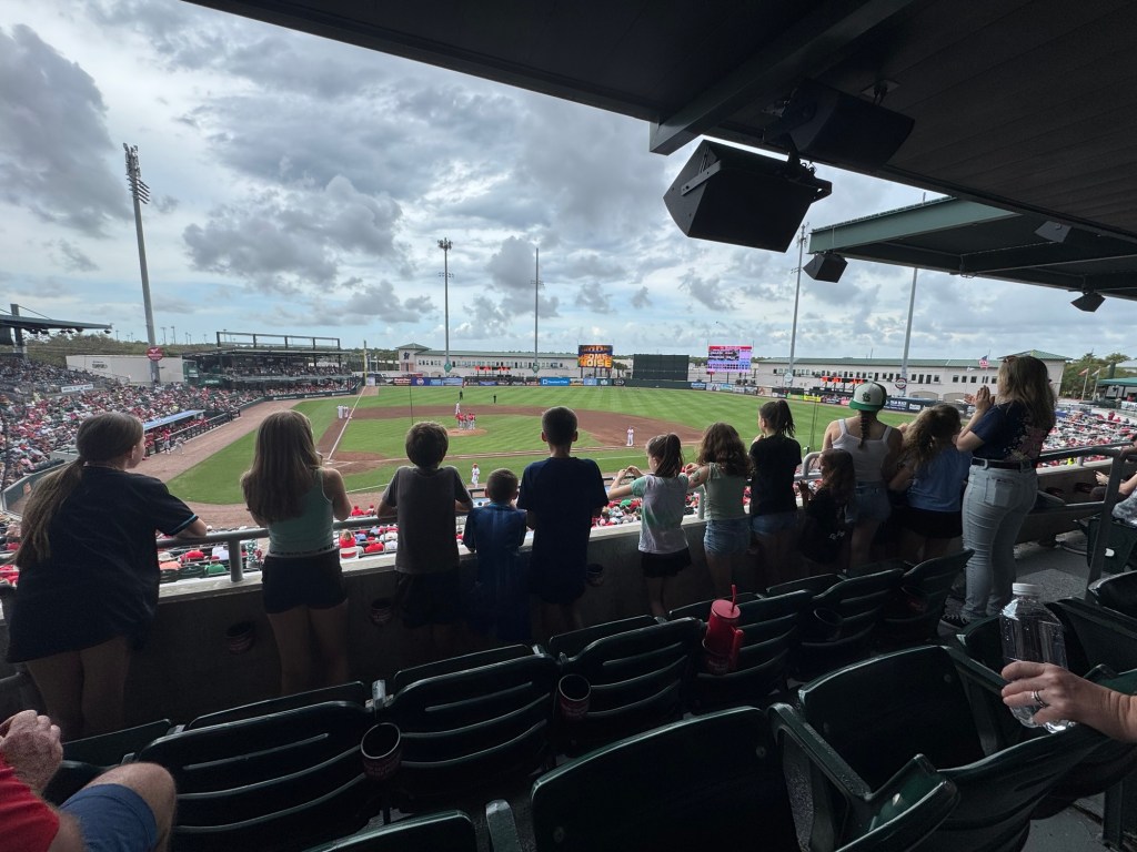 On Sunday, we were able to go to the Cardinals Spring Training game and courtesy of our favorite Cardinals staffer and family we got to enjoy the suite life. I’m not going to lie, it is pretty darn sweet!
